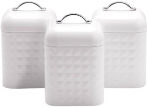 Zestaw 3 pojemników metalowych na kawę/herbatę/cukier MR-1676-3S-WHITE