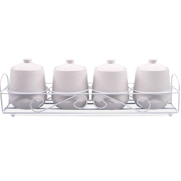 Wyjątkowy zestaw ceramicznych pojemników 5 elementów o nazwie 'WHITE' jest idealnym dodatkiem do Twojej kuchni. Ten elegancki komplet 4 pojemników do przypraw wykonany jest z wysokiej jakości ceramiki, co stwarza trwałą i stylową oprawę dla Twoich ulubionych smaków. Każdy pojemnik posiada indywidualne wieczko, zapewniające świeżość i zapach, a także zabezpieczające przed wilgocią.