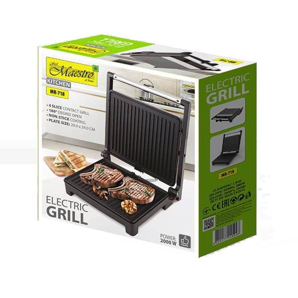 Grill elektryczny Maestro MR-718 2000W to doskonałe rozwiązanie dla wszystkich, którzy cenią sobie prostotę i wygodę w przygotowywaniu pysznych dań.