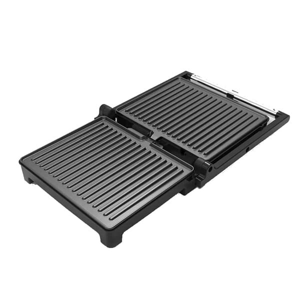 Ponadto, z grilla możesz skorzystać w dwóch pozycjach - możesz ustawić płyty grilla pod kątem 90° lub 180°, co pozwala na dostosowanie do różnych rodzajów potraw.